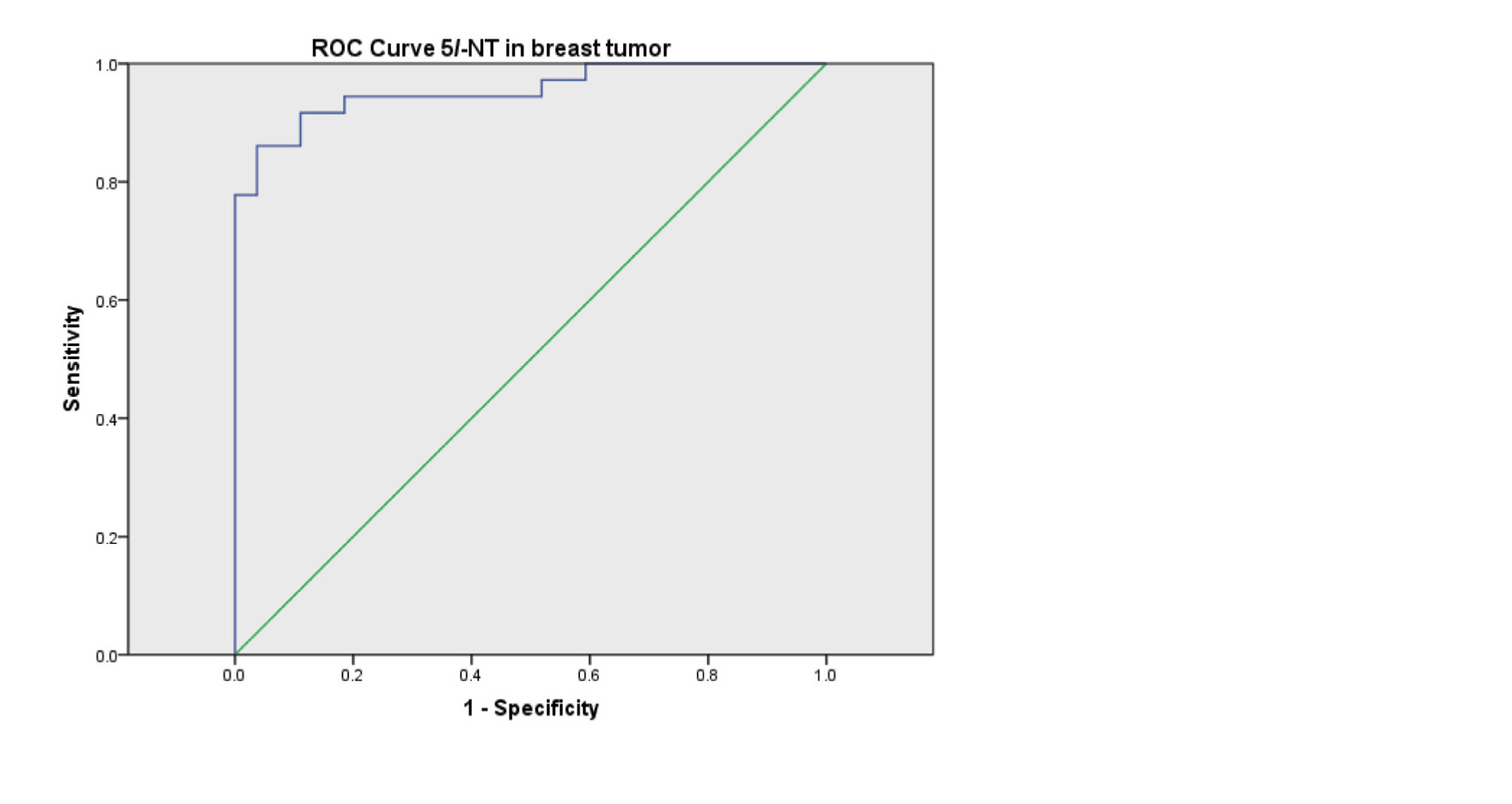 The true positive rate (sensitivity) of tissue extract of 5´-NT activity in brain and breast were (80.4%) and (85.7%) respectively, and the false-positive rate (1-specificity) were (13.6%) and (11.11%) for brain and breast patients respectively.
