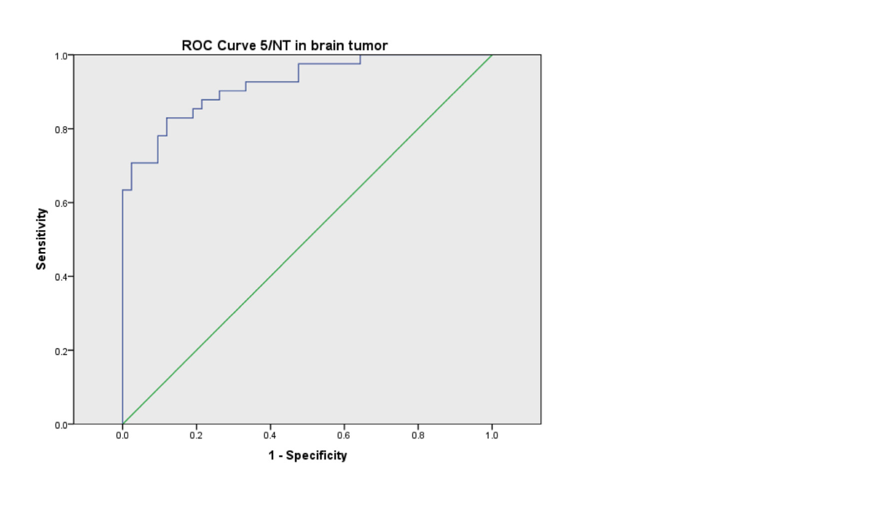Figure 4 ROC curve of 5′-NT on outcomes of 83 patients ((benign & malignant brain tumors). 5′ -NT specific activity (AUC=0.922; P<0.05).